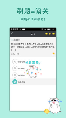 使用天天爱刷题,像打游戏一样看到自己每次做题的进步,获得经验值,提升等级,解锁会卖萌的小宠物陪你刷题。还能和小伙伴们互相鼓励,一起进步,在天天爱刷题上彼此监督。太枯燥?没动力?来天天爱刷题,让努力,变简单!