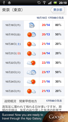 初回起動時に地域の選択画面が表示されるので、選択してください。