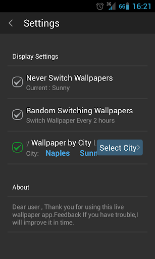 包含台灣地區所有城市。最美麗最準確的天氣動態桌布。可以根據所在地區的天氣動態顯示天氣桌布。支持攝氏度和華氏度。包括10多種天氣狀況。支持全球所有地區。最漂亮,最準確。每小時更新最新的天氣狀況。