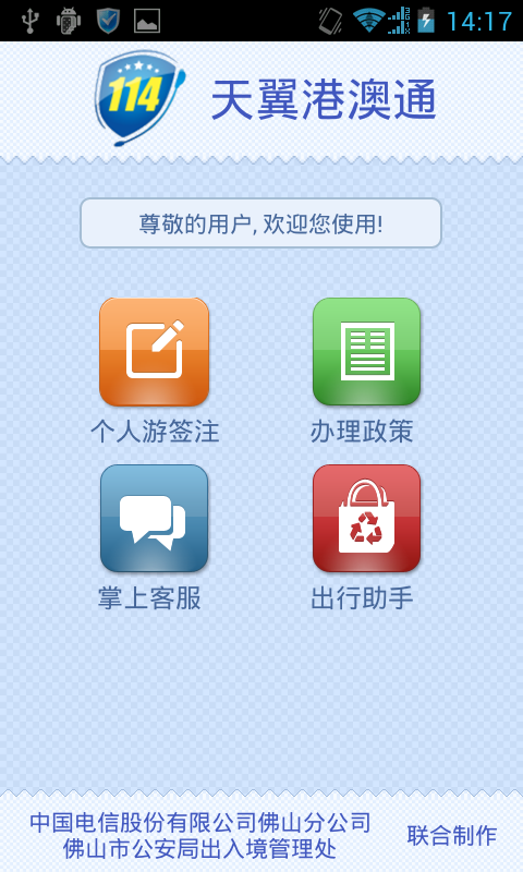 天翼港澳通——足不出户,港澳通行证签注轻松办理。本应用由中国电信佛山分公司推出。