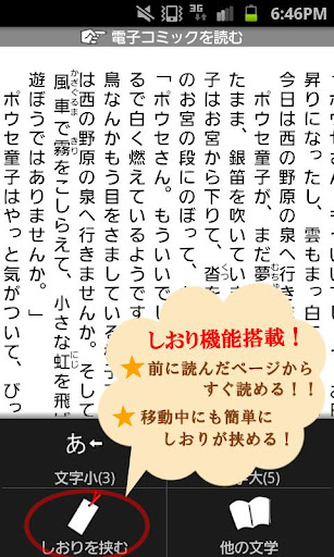 しおりを挟んで前読んだとこから読み始められ、移動中でも簡単!