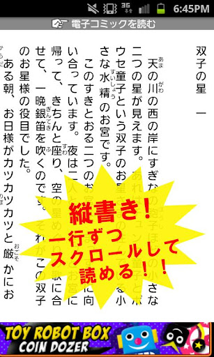 読みやすい縦書きで一行ずつスクロールして読めます。