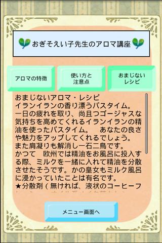 更に、「女子占い十香の書」でご好評を頂いたアロマテラピストに、アロマテラピー特別講座を執筆、各タイプに合わせた特別レシピを作成していただきました。 アロマテラピーとは? 精油とは? 精油のベーシックな使い方を含めて丁寧にご指導いただき、女子力アップにお役立ていただける内容です。