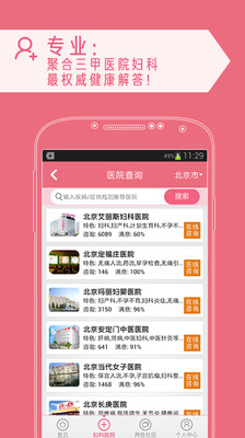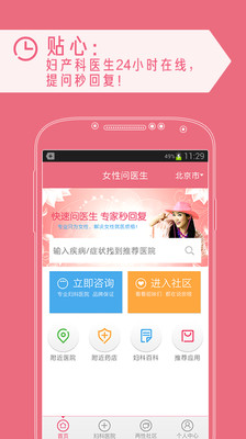 为什么选择女性问医生?获得300万女性闺蜜的亲睐!解决月经不调等各类妇科炎症困扰,您的女性私人医生,关注大姨妈性生活避孕。贴心:专业妇科/产科医生24小时在线咨询,提问回答秒回复,让你从容应对妇科产科各类问题,一键解决!专业:聚合三甲医院等高端医院医生,最权威专业的健康解答!定制:可收藏你常用的医院医生,下次一键问询。互动:在线论坛互动交流,与好姐妹交流,安全期、大姨妈、各类妇科疾病等一问便知!安全:一对一健康咨询,一对一预约挂号,所问医生问题隐私安全保证。