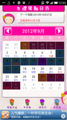 生理周期日历是一款记录女子生理周期的贴心软件。本软件可智能计算女生月经期,排卵期,安全期。全程记录生理周期中的点点滴滴。