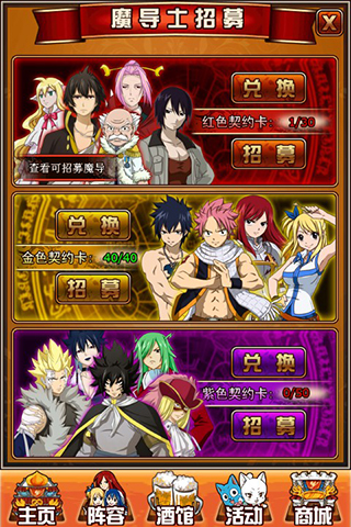 《妖精的尾巴》手游是一款结合了卡牌养成和对战策略的RPG游戏。四大类职业、上百张卡牌的技能均不相同,可通过升级、附加效果、进阶实现提升和变化, 3*3的阵容中根据布阵位置可以更加自由和个性化的组合搭配。与卡牌相关联的法源系统,是另一重要成长线。法源道具不仅能镶嵌于魔导士星盘中,通过自身成长提升一级属性,更结合了《妖尾》剧情中的人物关系,与魔导士卡牌关联激活相性,获得伤害加成、受伤减免的特殊战斗属性。
