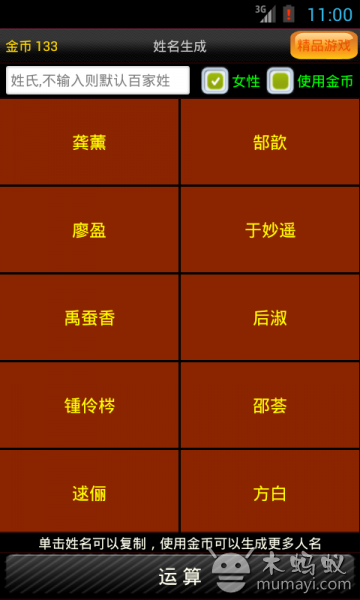 针对目前网游、论坛人数繁多,自起网名困难的现状,推出随机姓名生成器,可自动生成全中文或带特殊符号或女性化等各种姓名,只有你想不到,没有生成不了的