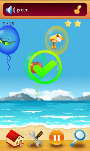 快樂玩遊戲,輕鬆學英語。《娃娃英語棒棒棒 English Bang! Bang! Bang!》是ELEVEN系列教育遊戲之一,適合2-8的孩子學習和記憶英語單詞。遊戲介面均採用適合兒童識別和操作的圖形化介面,簡單易懂,不需要任何文字基礎。遊戲開始後,會聽到系統發出的單詞提示聲音,根據提示音點擊帶有相應圖案的氣球即可。答對時會得到一個小金星的獎勵,每五個小金星會自動換成一個金拇指。