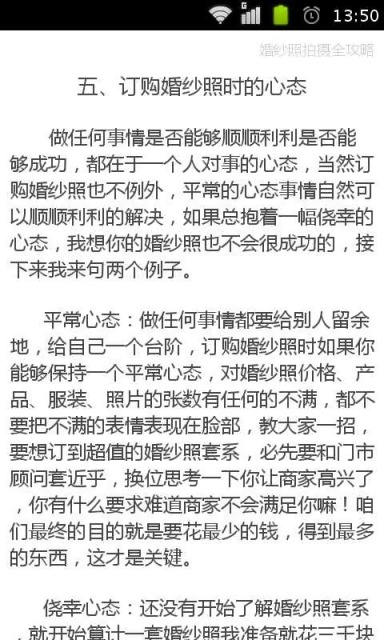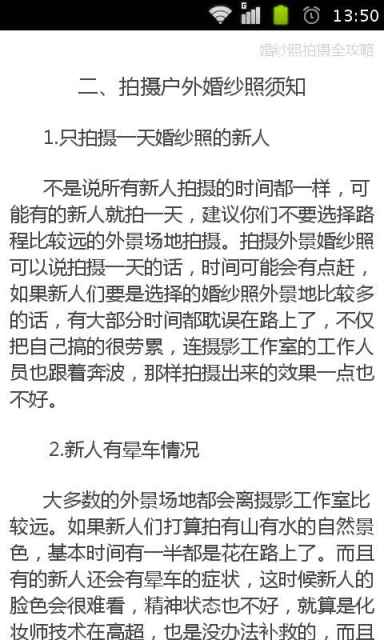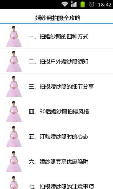 结婚是人的一生中很重要的一个时刻,而婚纱照更是为新婚的夫妻增添了幸福的色彩但是如何拍摄婚纱照成为了人们的焦点,婚纱照怎么拍?在哪里拍?拍婚纱照该注意哪些事项?本应用为你提供了一些建议,和你的另一半一起看看吧