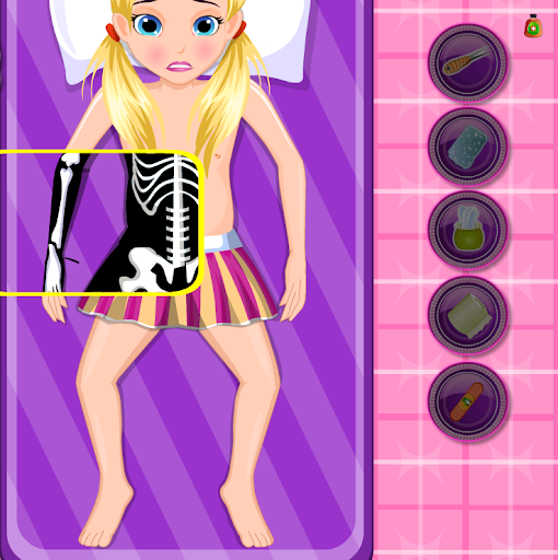 这个小宝宝受伤了,她从一荡下跌直入蓟的灌木。她现在在医院,作为一个伟大的医生,你要医治她。让我们给她很大的就医,治愈伤口,并给她注射。祝好运!
