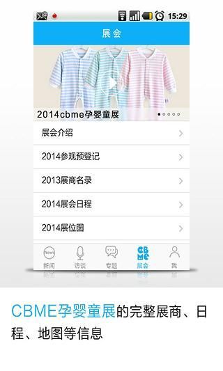 【产品特点】* 行业媒体全覆盖,每日新闻不错过* 专题栏目让您轻松聚焦行业热点,查看多角度报道* 可直接在手机上第一时间查询每年CBME孕婴童展的全部展商信息、进行预登记以及获取活动日程、展位图、展会报告等相关服务。* 访谈栏目让你走近行业大佬,学习第一手行业成功经验* 收藏、分享、帐号登录等功能让好信息可以跨设备查看弹指间获取信息,谈笑间建立商机!还没下载吗?整个中国孕婴童行业,就差你一个了!【联系我们】新浪官博:@孕婴童微报腾讯官博:@孕婴童微报微信公共号:孕婴童微报网址:http://www.eebochina.com/cbmweibao/index.htm电子邮箱:eeweibo@eebochina.com