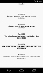 Fonts for Android Samsung Galaxy FlipFont Free 花了近一年收集的免費字體和創建Android應用程序,為用戶提供改變他們的設備的字體為自由的能力。使用安裝在你的三星Galaxy手機FlipFont字體轉換程序,你可以使用這個應用程序到您的設備定制的,我們已經收集了許多美麗的字體之一。字體每捆是隨機選擇的5字體已經經過優化,三星Galaxy Android設備上使用。請通過我們的許多FlipFont包瀏覽,以找到適合自己口味的完美字體樣式。