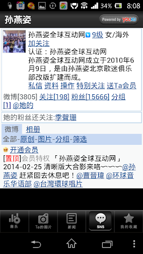 这是一个关于孙燕姿的最新的视频,图片,音乐和新闻的安卓应用,作为孙燕姿的粉丝,是不是有责任和义务努力地追并且第一时间知道她的新闻,图片和视频音乐等。明星还是要努力追的,努力的人便得着了。
