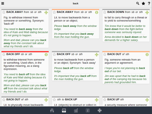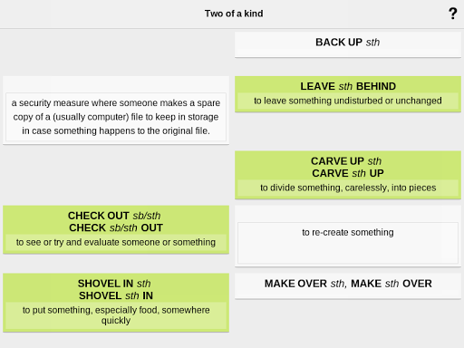 您将有时间熟悉一些新的动词短语,然后进行一系列的练习题,这些练习形成有组织的学习周期。您可以决定学习哪些动词短语——如果需要,该应用还会自动推荐更多内容。