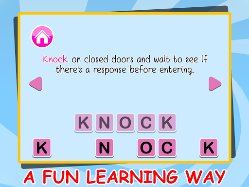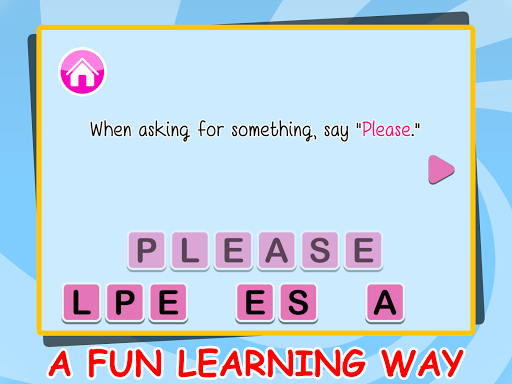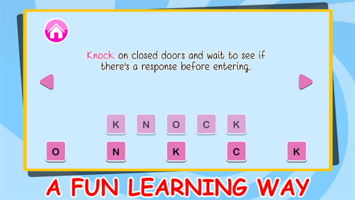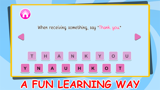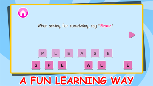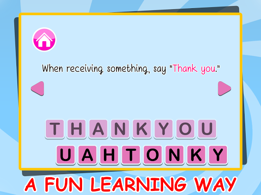 禮貌的孩子是伴隨著研究的最重要的事情。你開始教你的孩子的禮貌和禮儀,他們進入學校,甚至在。為什麼不能學習他們的拼寫和發音了。憑藉專業的配音,supercard抽認卡,流暢的動畫,簡單的佈局和鮮豔的圖像;建築詞彙是這麼多的樂趣為你幼兒園的孩子。這是最好的記憶體建設工作為所有的孩子要么已經在幼兒園或者即將進入它。閃存卡能讓您的孩子快速記憶單詞和字母。它使一個印象,在他們的心目中,讓他們輕鬆地記住單詞。憑藉專業的配音,他就能夠知道如何正確發音的單詞。色彩繽紛而又簡單的設計,讓你搞了很長的時間。這個有趣的學習使他參與學習和了解的一切。