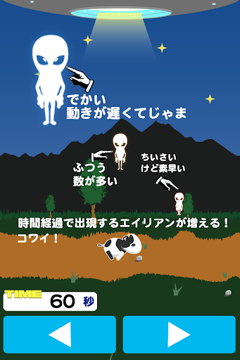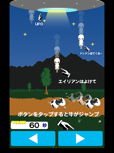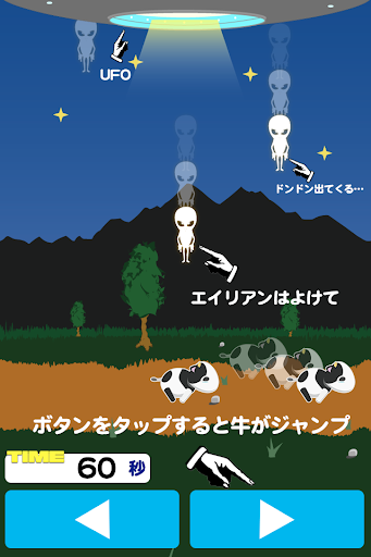研究のためにうしをアブダクションしようとする宇宙人を、ボタン操作でよけつづけよう。