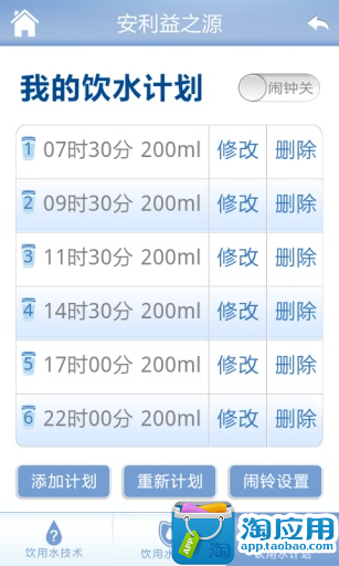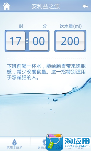 您还可以基于自己的作息习惯,定制专属饮水计划,饮水顾问会适时提醒您每天饮用6杯安心水,守护您的饮水健康!