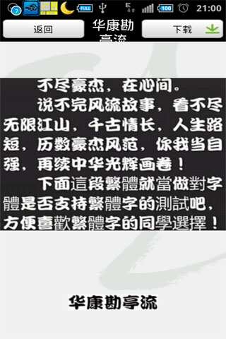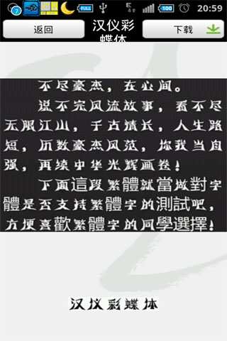 安卓字体大全是一款小巧,方便的手机字体更改软件,集成了几十款中文美化字体,有可爱字体,华康少女字体,萝莉字体等多种字体,均已经过测试,只需要简单的点击几下就可实现字体更改.