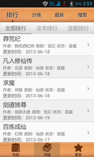 安卓小说书城是一款在线与本地阅读小说的软件。拥有十多个分类、上万本的小说资源,在线阅读免去下载书本的烦恼,热门最新最快的连载让你看个过瘾,当然您也可以在下载书籍到本地慢慢品味!程序还有书籍管理与收藏功能,音量键翻页,自定义背景等等功能,简单易用,快来感受遨游书海的乐趣吧!