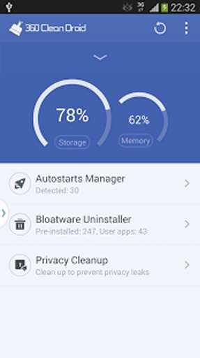 安卓清理大师 360 Clean Droid是一款系统垃圾清理工具,可以帮助你快速的扫描并清理垃圾文件。
