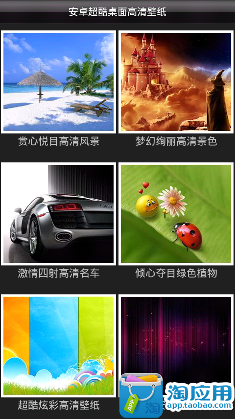 安卓超酷桌面系列壁纸,美化您的手机桌面,保护您的视力,带给您清新的桌面感觉!该资源系互联网收集的一些高清风景桌面壁纸 ,压缩成分辨率960*800,可作为安卓手机五屏桌面壁纸使用汇集精彩壁纸!轻动手指,高清图片应有尽有!伴您度过寂寞时光!
