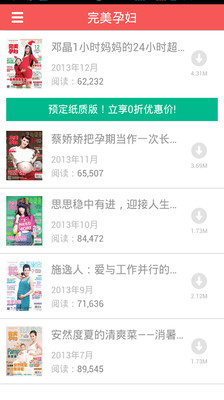 完美孕妇医务背景强大,专业内容更可信赖: 1. 权威专家团队参与: 来自全国各个领域的权威专家组成的专家组提供最权威、务实有效的专业服务,为读者呈现最好的孕产知识辅导; 2. 新锐严谨的制作团队: 编辑与专家互动的采编模式,将专业知识融入生活化的表达方式,图文并茂、读者一目了然、简明易懂,如工具书一样务实精良,堪称行业首家。 完美孕妇杂志特点,阅读性更佳,参与度更高: 1. 独家拍摄所有图片,图片总量行业第一。 2. 独家绘制所有插画,独特唯美的日韩风格深受妈妈喜爱。 3. 分解式图文表述方式,让专业知识的传播更细致入微。 4. 搭建互动和分享契机,本杂志的互动频率和忠诚度堪称行业首家。 5. 大型读者活动高频率开展、形式丰富精彩、礼品精美实用,满意度堪称行业第一。