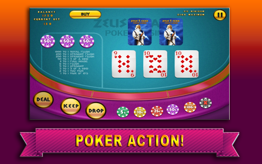 宙斯撲克是一個完美的現場賭場卡撲克遊戲!這需要你最喜歡的活三卡撲克遊戲到一個新的水平!愛德州撲克?愛卡5州長撲克?這場比賽是獨特而有趣的在同一時間州長或新手!在本德州撲克式卡片遊戲您的生活算牌技巧的工作!