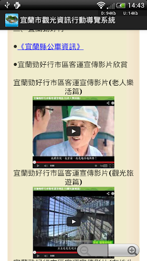 宜蘭市觀光導覽網站Android App內容豐富包含文字、圖片、影音介紹: