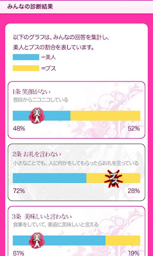 ブスの25ヶ条をもとに、あなた自身の振る舞いや気持ちに対する25個の質問を用意しています。