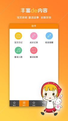 【育儿工具箱】除了这些,宝宝助手还自带高大上育儿工具箱,就像哆啦A梦的百宝箱,帮助爸爸妈妈们贴心照顾好自己的宝宝,喂奶提醒、疫苗提醒、哄睡神器、儿歌故事、辣妈养成……,很暖很贴心。
