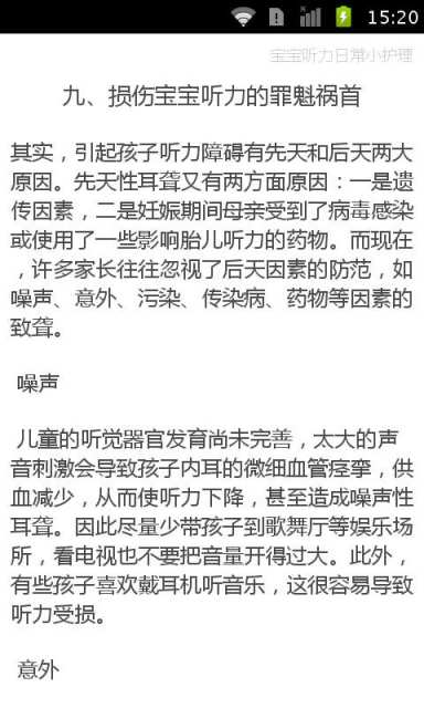 多数情况下,幼儿的听觉问题是被父母或家庭中其他成员发现的,但有的父母缺乏这方面的知识。当孩子到了应开口说话的年龄还不会说话才引起,有的却认为是“开口晚”,还要等待。其实宝宝的听觉问题要特别引起重视,要注重宝宝耳朵的日常护理工作。下面来看看如何护理宝宝听力吧。
