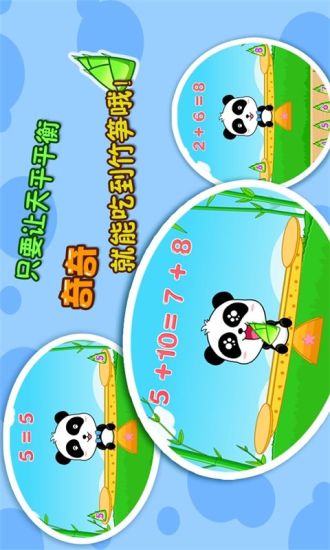 宝宝学加法利用天平的原理让宝宝学会简单的加法算术,训练宝宝对数字的敏感度以及严谨思考过程,对宝宝的每个操作都给予积极的回应而大猩猩的长手臂造型、熊猫的天平式造型对宝宝来说有很强的吸引力, 让宝宝在游戏的过程中不知不觉学会加法赶快来试试吧!