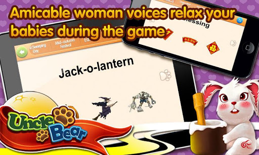 《宝宝拼图:外国节日》是“熊大叔儿童游戏“专门为宝宝设计的一款场景化识物拼图游戏,1岁以上的宝宝就可以开始使用。在场景化的游戏过程中,不仅提高了宝宝的动手能力,识物能力,培养了宝宝的发音水平,同时还能让宝宝在游戏中学习到其他语言的读法。在宝宝的心目中,“熊大叔”是一个手掌上的双语幼儿园!