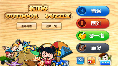 首先,在游戏主界面可以选择简/繁/英其中一种语言;然后选择简单或普通模式就可以进入游戏,并选择一个物体开始拼图,拼成功后,物体旁边不仅会按照所选语言显示该拼图的名称,还会伴有发音。