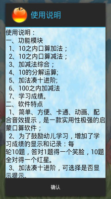 最完美的幼教学习应用,根据儿童学习的特点,通过游戏方式,让宝宝快速学会算术启蒙,图像精美,声音清晰,是父母教育小宝宝的最佳助手!