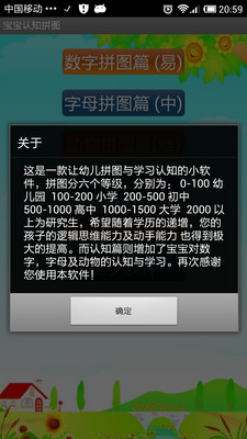 本软件分数字篇,字母篇及动物篇,分别从易到难,不断提高手眼协调能力!