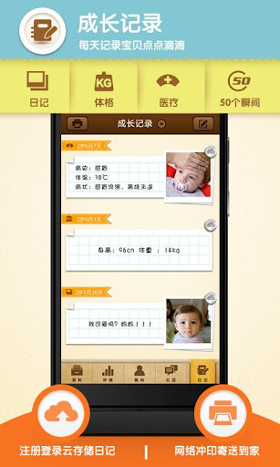 ★ 感动微日记:独创“微电影”形式播放日记,音乐+幻灯片形式,感动回顾宝宝成长点滴