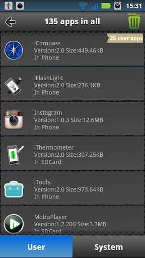 实用工具箱集合了一些基于手机的实用工具,包括软件管理,指南针,手电筒,温度计,水平仪,刻度尺,传感器检测,振动器,屏幕截图,屏幕检测等实用工具,它将成为你生活中的好帮手