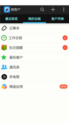 安卓平台上最好用的掌上客户关系管理软件,界面简单友好,功能实用易用,使手机联系人和客户资料相分离,让您随时掌握客户信息、动态,微客户软件还为您提供了如:记事本,工作日程,客户生日提醒,跟进记录等辅助功能,是一款真正独立的手机客户关系管理软件。