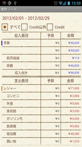 Keywords: 家計簿, カレンダー, お買い物, クレジット