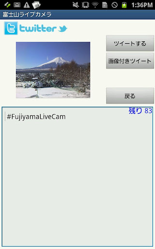 ・Twitter機能を搭載し、富士山画像をTweetすることができます。