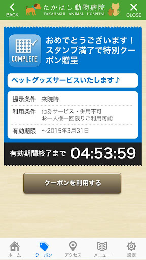 このアプリでは、たかはし動物病院の色々な情報やアプリユーザー限定のお得なサービスが手に入ります!