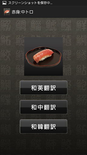 【寿司辞典翻訳】は、そんな外国人に日本の寿司ネタ名や旬の時期、うんちくを綺麗な寿司ネタイメージと共に自国語で翻訳するアプリです。