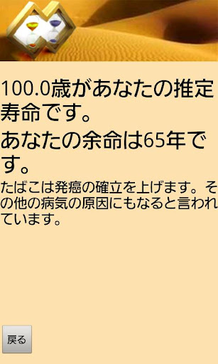 その次に本アプリでは用意された質問の回答を分析し、遺伝や生活習慣等の寿命に関係する要素を基準となる平均寿命に加味し、推定寿命を算出します。