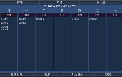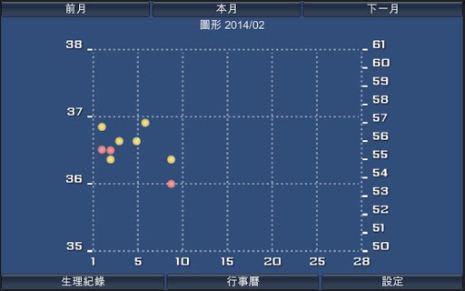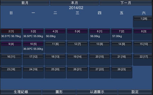 您可以透過圖表來顯示基礎體溫、體重的變化狀況。