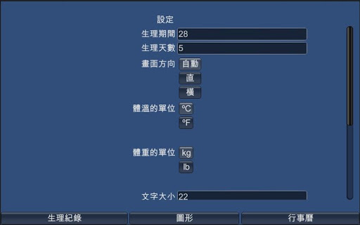 您可以自由設定文字的大小、畫面的方向、行事曆裡頭要以月或週為單位來顯示。