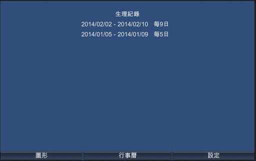 生理紀錄之中可以顯示過去的生理期間與日數。