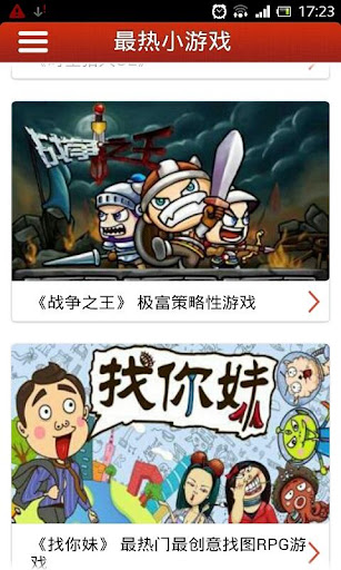 小游戏是原始的游戏娱乐方式,小游戏本身是为了叫人们在工作,学习后的一种娱乐、休闲的一种方式,不是为了叫玩家为之花费金钱、花费精力,更不是叫玩家为他痴迷。小游戏推荐最新最IN最火爆的游戏,让你不会做过每一款热门游戏。