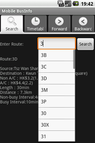 除了查詢一般路線資料外,此程式也提供點到點路線搜尋及 GPS 定位功能。