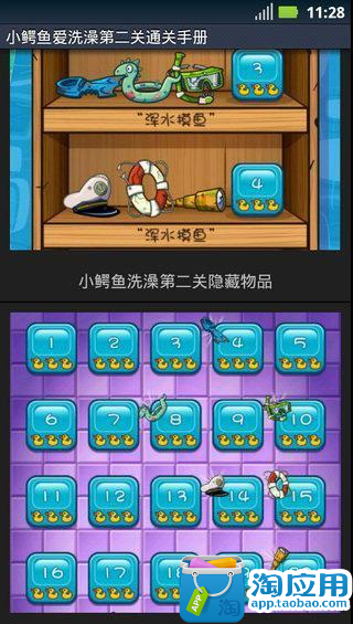 此手册为第二大关浑水摸鱼的攻略教程,教你轻松过关,并且得到三只鸭子,帮助鳄鱼找回小鸭子,并且告诉你隐藏物品的位置,并打开隐藏关卡!
